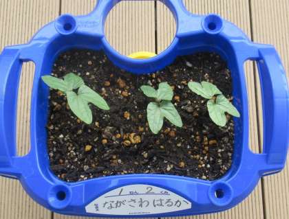 1ねんせいの みなさんの あさがおの めは、いくつ でましたか?そして、はっぱは なんまいに なりましたか?
