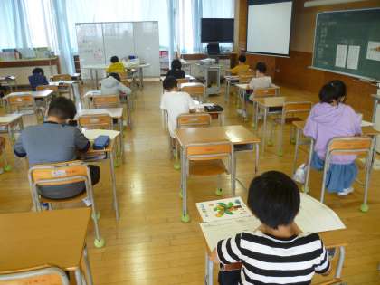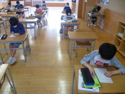 分散登校1日目。教室に子供たちの笑顔が戻りました。算数科「1億より大きな数」の学習では、位に気を付けて数を読んだり、数字で表したりしました。理科では、ヘチマの種の観察をしました。これからヘチマがどのように成長していくのか楽しみにしていました。