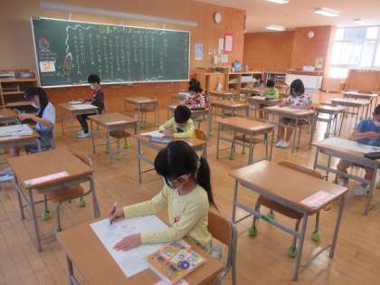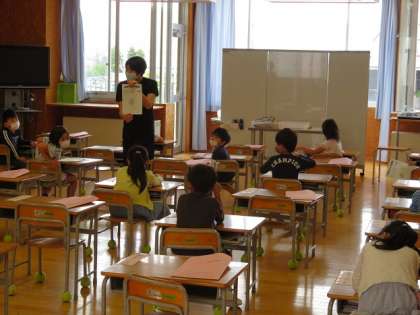 最初は、休業中の過ごし方をいっぱい話してくれました。授業では、これからの学校での過ごし方をしっかりと聞いて、約束しました。また、休業中に植えたあさがおの様子を聞き合ったり、何度も家で音読した「うたにあわせて あいうえお」を元気に読んだりしました。3時限という短い時間でしたが、子供たちは、わくわくしながらも、落ち着いて学習に取り組むことができました。
