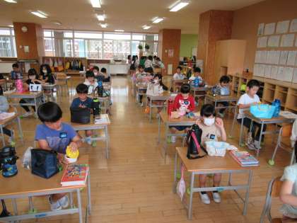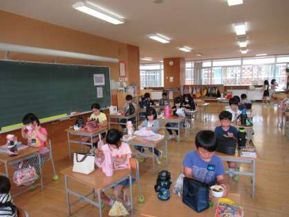 4時間目から、「お腹がすいた」とお弁当を楽しみにしていた子供たち。おいしそうにお弁当を食べていました。