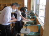 図画工作科では電動糸のこぎりを使い、伝言板の作成をしました。初めて扱う器具を器用に扱いながら、楽しんで活動していました。