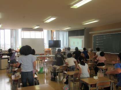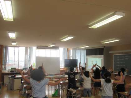 午後の活動でエアロビクスを行い、リズムに合わせて体を動かしました。終わったときに「きつかったけど、楽しかったね」と笑顔で話していました。心も体もリフレッシュできたようです。