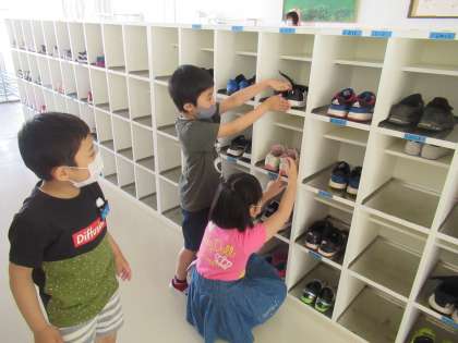 今日は、下足箱を見に行き、くつをそろえました。みんなのくつがきれいにそろうと、とてもすっきりとした気持ちになりましたね。明日からも、意識してくつをそろえていきましょう。
