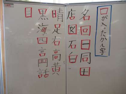 国語で、同じ部分をもつ漢字の学習をしました。今日は、みんなで、こんなにたくさんの「口」が入った漢字の仲間を見付けることができました。たくさん見付けることができ、みんな喜んでいました。