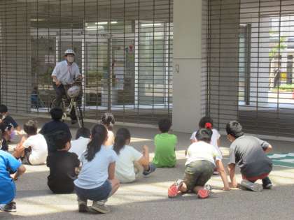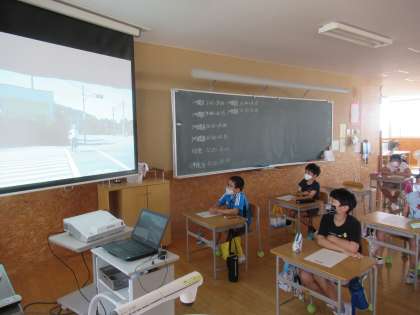 自転車教室が行われました。映像資料と自転車乗車の実演を見ることを通して、安全な自転車の乗り方について学習しました。映像の中で危険な場面に差し掛かるところで「あー、危ない!!」「この乗り方はだめだよ!!」と声を上げていました。最後に学習内容を確認するテストを行いました。子供たちは自転車の乗り方をしっかりと理解したようでした。