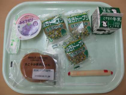 こくとうロールパン 牛乳 チーズかまぼこ ほうれんそうドーナツ