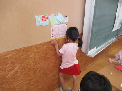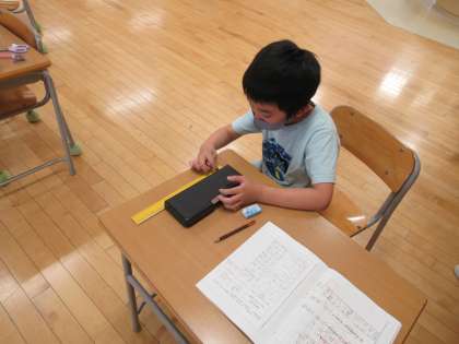 算数の学習で、竹物差しを使っていろいろなものの長さを測りました。mm単位まで正確に測ろうとする姿が見られました。