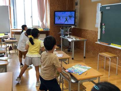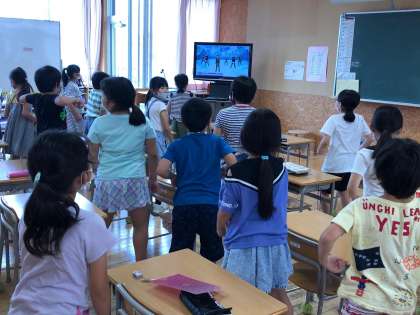 午後の学習の前に、体力つくりの時間があります。少しの時間ですが、みんなで体を動かす活動を楽しんでいます。