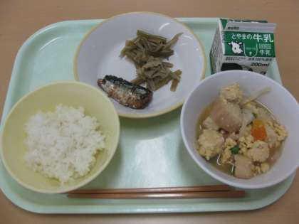ごはん 牛乳 さんまのマーマレードに くきわかめのきんぴら