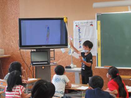 国語科「あったらいいな こんなもの」の発表会をしました。いろいろなアイディアがあって、「いいね〜!」という言葉が飛び交いました。振り返りをすると、「前よりも恥ずかしがらずにはっきり話すことができるようになりました」「みんなの方を向いて話すことができました」と話し、できるようになったことが増えた子供たちでした。