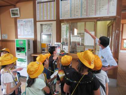 2年生は、今日町探検に行ってきました。緑コースチームは、半俵川、荏原駅に行きました。牛のもようのこいを見付けたり、荏原駅を通る電車を間近で見ることができたりして、とても楽しそうでした。また、荏原駅では駅員さんにたくさん質問をし、もっと新庄北の町について知ることができました。