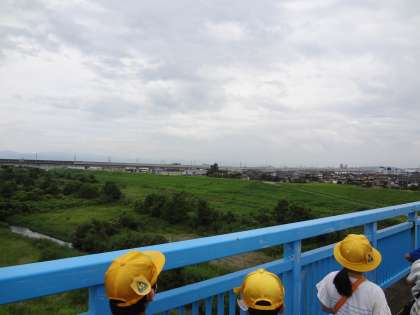 国道は大きな車がたくさん走り、自分たちが思っていたよりも店や会社がたくさんあることにびっくりしていました。いつも車で通っている道を歩くことで、いろいろなこと・ものに気付いたようです。常願寺川にかかる雄峰大橋にも行きました。北陸新幹線が東京方面へ走っていくのを見て歓声を上げていた子供たちでした。