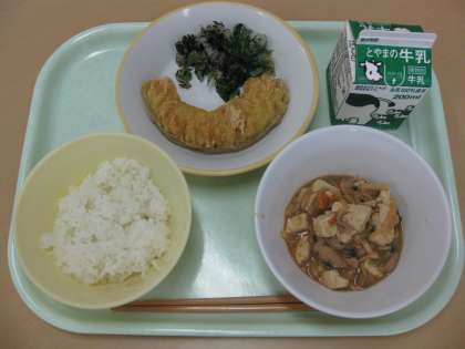 ごはん 牛乳 かぼちゃのてんぷら よごし とうふのみそいため