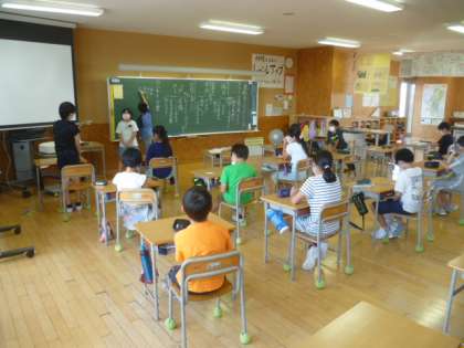 運動会のスローガンにどのような言葉を入れたいかを話し合いました。子供たちは「みんなが笑顔になれる運動会にしたい」「みんなが楽しめるように『みんなよし』という言葉を入れたい」と運動会に向けて、思いを語っていました。