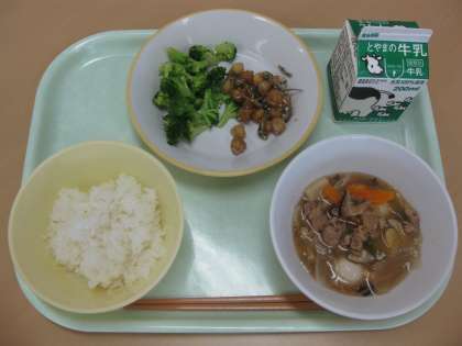 ごはん 牛乳 こざかないりフライビーンズ ゆでブロッコリー