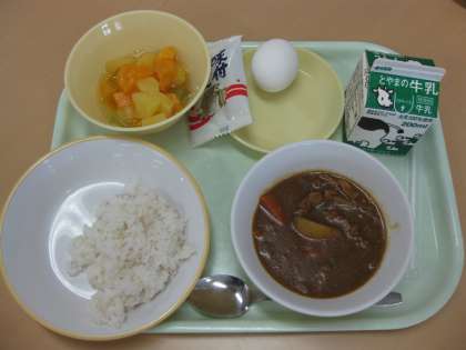 むぎごはん 牛乳 カレーライス ゆでたまご あじつけこざかな
