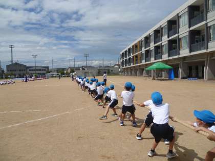 今日は、1年生と一緒に綱引きの練習をしました。今年の運動会では、低・中・高学年に分かれて綱引きを行います。2年生は上の学年として、1年生の手本になろうとがんばって練習に取り組みました。最初に、綱を持ったり置いたりするタイミングや、綱の引き方について全員で確認しました。子供たちは、話を真剣に聞いていました。実際に綱を引く練習では、低い姿勢になり、全身を使いながら、一生懸命に引く姿が見られました。明日は、綱引きの予選が行われます。予選の組み合わせを決めるために、それぞれの団のリーダーが、最後にくじ引きを行いました。対戦相手が決まり、子供たちのやる気は、よりいっそう高まりました。
