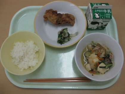 ごはん 牛乳 あじのえごまあげ とろろこんぶあえ とうふのチャンプルー