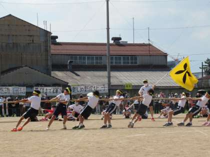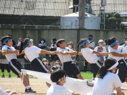 中学年綱引きは、予選の結果を受け、赤vs青、白vs黄で行いました。低い姿勢や視線、綱を持つ手の向きなど練習で学んだこつを意識している子が多く、とても白熱した闘いになりました。3,4年生みんなで力を合わせ、頑張ることの良さを感じた子どもたちです。