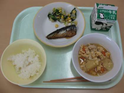 ごはん 牛乳 いわしのきしゅうに コーンあえ おやこに