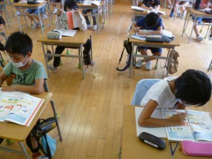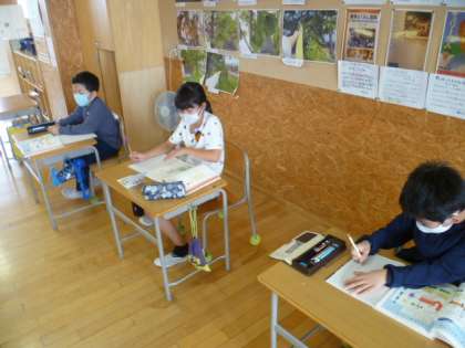 国語科の学習で、パンフレットを読みました。子供たちはじっくりと読み、気付いたことをノートにまとめました。「短く分かりやすく文章が書かれていて読みやすいね」「順番が分かるように番号が書かれているよ」とパンフレットの工夫を見付けていました。
