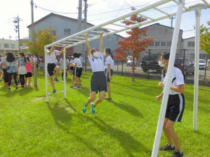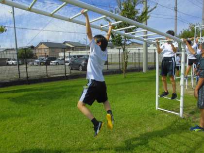日中も過ごしやすい季節になり、外で体力つくりを行いました。子供たちは、久々に雲梯や鉄棒、走り幅跳びに取り組み、たくさん身体を動かすことができたようです。