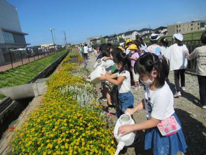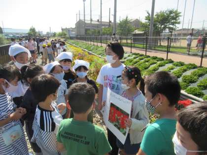 3年生さんから「オープン花畑」に招待してもらって、行ってきました。たくさんの綺麗なお花を見たり、花のクイズに答えたり、水やり体験をさせてもらったりして、楽しんでいました。子供たちは「花がきれいだった」「クイズがおもしろかったよ」と話していました。