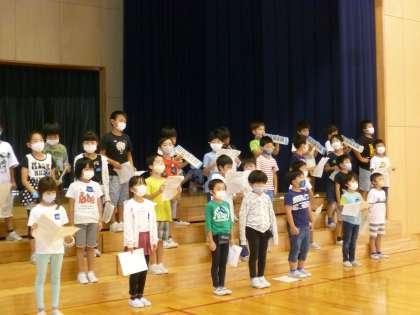 学習発表会に向け、練習が始まっています。2年生は、群読に挑戦します。今日は、体育館で、入場から通して練習を行いました。入場の並び方や、ステージへの上がり方等、一度教わっただけでしっかり覚え、自分たちで並ぶことができました。みんなで声を揃えるところや、かけ合いをするところなどで、息を合わせられるよう練習しました。本番で堂々とした姿を披露することができるよう、来週からも毎日練習を重ねていきます。