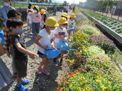 今日は、2組のオープン花畑の日でした。ポスターや招待状、放送で全校に呼びかけたこともあり、多くの人が来てくれました。すでに開催し終えている1組のアドバイスを受け、クイズや花紹介コーナーを増やしたり、入場する門のところで人数を制限したりし、スムーズに行うことができました。「たくさんの人が来てくれてうれしかった」「自分たちの花畑を見てもらえてよかった」とやりきった様子でした。