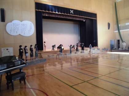 今日は体育館で全体練習を行いました。各グループの発表から合唱まで、だんだんと形になってきました。一方で、体育館という広い舞台では、動きや声をもっと大きくすることが必要だと気付きました。よりよい発表になるように、日々の練習をがんばる子供たちです。