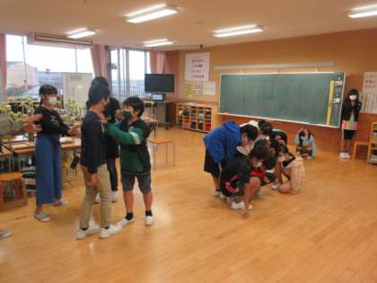 学習発表会に向けて、場面ごとに演技を見合いました。他の場面の演技を見て、「もっとこうしたらいいよ」とアドバイスをしていました。よりよい演技になるように6年生みんなでがんばっています。