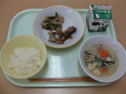 ごはん 牛乳 さんまのマーマレードに れんこんのきんぴら