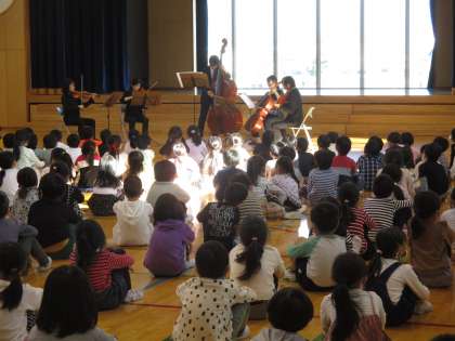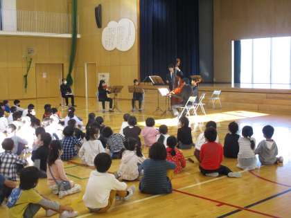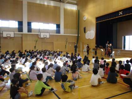 桐朋オーケストラアカデミーの方に来校いただき、演奏をしていただきました。生の弦楽器の音色に聴き入っている子供たちでした。
