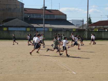 木曜日、体力つくりの時間にみんなでグラウンドへ出て、思い切り走りました。タイムの近い友達と競争する子、仲のよい友達と走る子、友達を励ます子、一人一人が生き生きとした表情で走っていました。子どもたちは「また走りたい!」と、とても楽しそうでした。