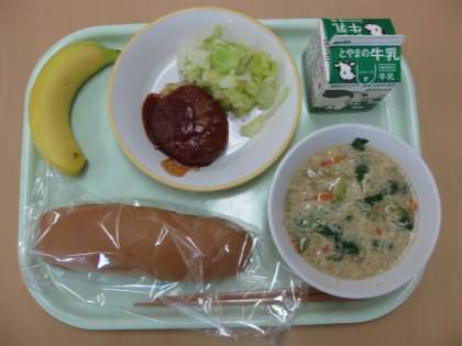 こくとうコッペパン 牛乳 ハンバーグのケチャップあじ ゆでキャベツ