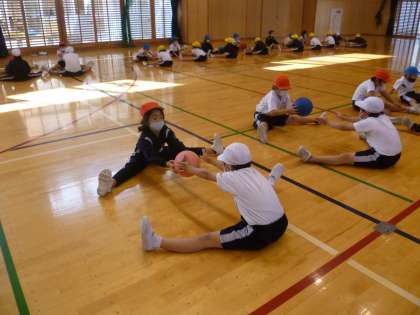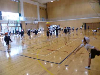 今日の体育は、ボールを使って活動しました。初めに、ボールの投げ方について勉強しました。手足や腰をどう動かせば、ボールがよく飛ぶのか、みんなで一つずつ確認しました。その後は、実際にボールを使って、ペアで活動しました。距離を開けて向かい合わせになり、投げずにボールを渡したり、もっと距離をとってボールをバウンドさせてパスしたり、いろいろな練習をしました。最後は、ボールをまっすぐに速く投げられるよう、投げ方を確認しながら、ペアで投げ合ってパスをしました。子供たちは、体の動かし方を意識しながら、一生懸命練習をしていました。