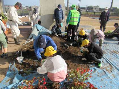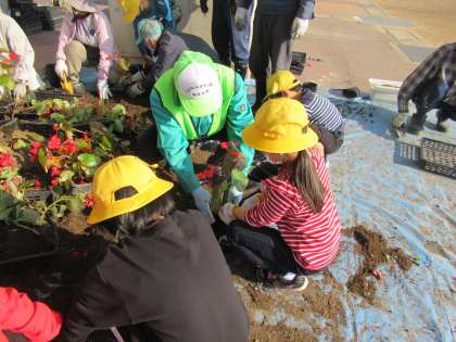 今日は、グリーンキーパーの皆さんに教えてもらいながらベゴニアの株あげをしました。123m花畑で世話をしていたベゴニアと上学年が育てていた人権の花のベゴニア、合わせて300株ほどを一つ一つ丁寧にポットに入れました。子供たちは、根を傷めないようにそっと持ち上げたり、空洞ができないように土をぎゅっと入れたりと、教わったこつを意識して作業しました。「123m花畑が終わってちょっと寂しいな」「次の3年生も大事に育ててほしい!」と充実感にあふれた表情でした。花畑で育てていた花の種もとったので、暖かくなったらぜひ家庭で育ててみてください。