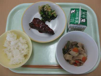 ごはん 牛乳 さかなのあまみそかけ ごまびたし いなかに