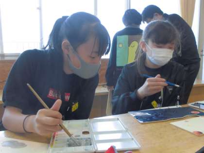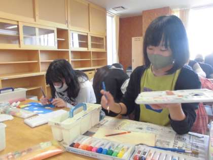 ティッシュボックスづくりでは、板を切り取り、色ぬりをしています。どの子もじっくりと取り組んでいます。