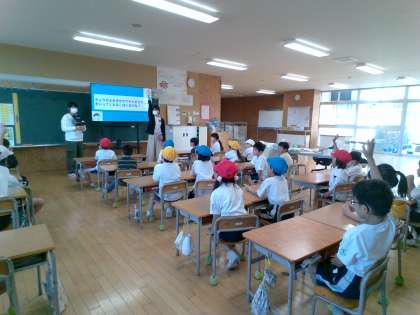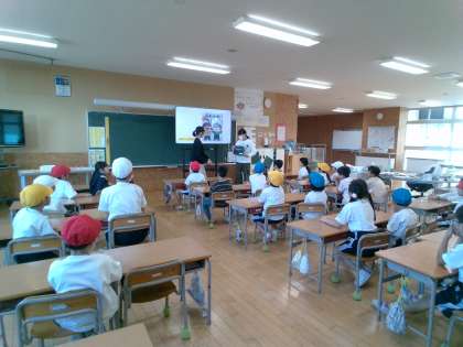 ふわふわ言葉を増やそうチームは、今週1年生の各クラスで、ふわふわ言葉について学べる絵本の読み聞かせを行いました。