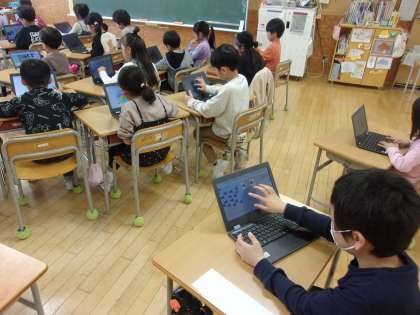 10月31日(水)にプログラミング教室がありました。クロムブックを使い、自分で魚を描き、魚を動かすことができました。