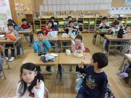 今日は、朝からお昼が待ち遠しい一日でした。お弁当タイムは、みんな、にっこにこでした。