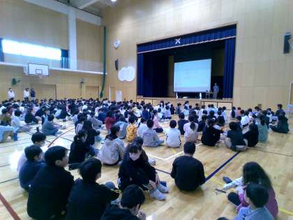 6年1組の仲を深めようグループの企画で、ファミリーの仲間ともっと仲を深める集会を行いました。企画の中には、先生クイズとかぶっちゃいやーよの活動がありました。どちらの活動も、ファミリー班の仲間と笑顔で活動する様子が見られました。
