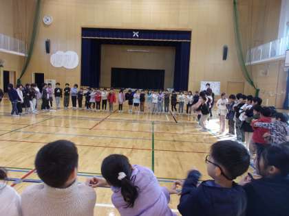 今日は2年生のみんなで集会をしました。各クラスでそれぞれ準備してきた出し物をしました。ダンスを踊ったりゲームをしたりして、学年みんなで楽しい時間を過ごすことができました。