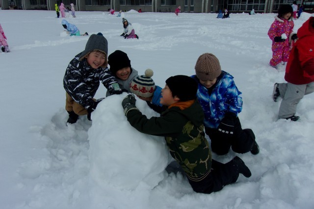 生活科の学習「ふゆとなかよし」で雪あそびをしました。