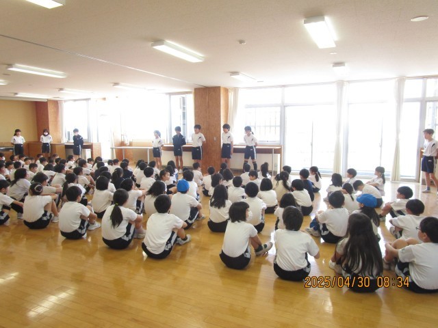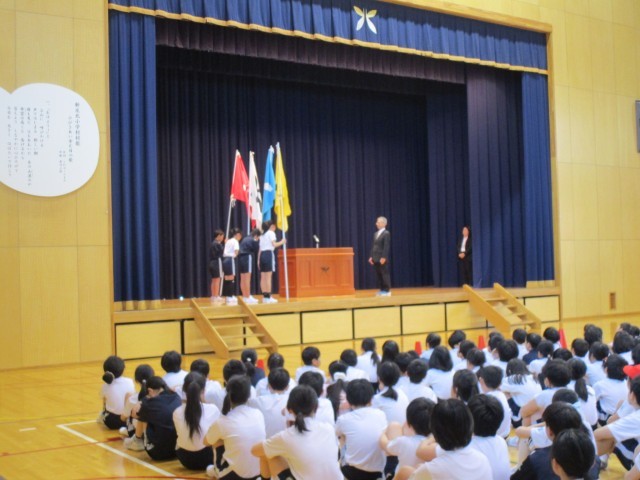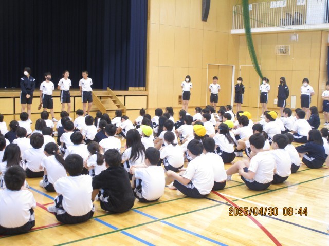 令和7年度の運動会に向けた結団式が体育館で行われました。