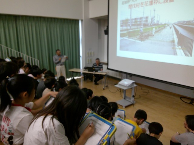 子供たちは、真剣に話を聞き、大事だと思ったことをメモしていました。地域の方の花畑に対する思いを知った子供たちは、「自分たちも気持ちを込めて花畑を作りたい」「元気な花を咲かせられるようにしたい」など、気持ちを膨らませています。