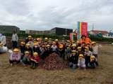 掘ったいもの山と一緒に記念撮影をしました。お世話になった地域の皆様、本当にあり...