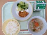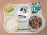 【今日の献立】 ごはん 牛乳 ポークパコラ そえやさい かぶのスープ