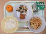 【今日の献立】 ひじきごはん 牛乳 いかとまめのカレーあげ グリーンサラダ とう...